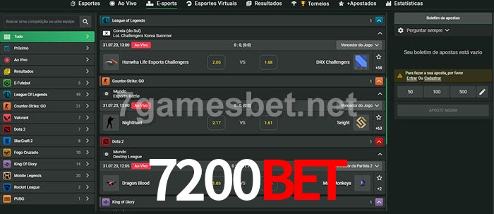 O 7200Bet oferece uma grande seleção de opções de apostas em e-sports com probabilidades competitivas